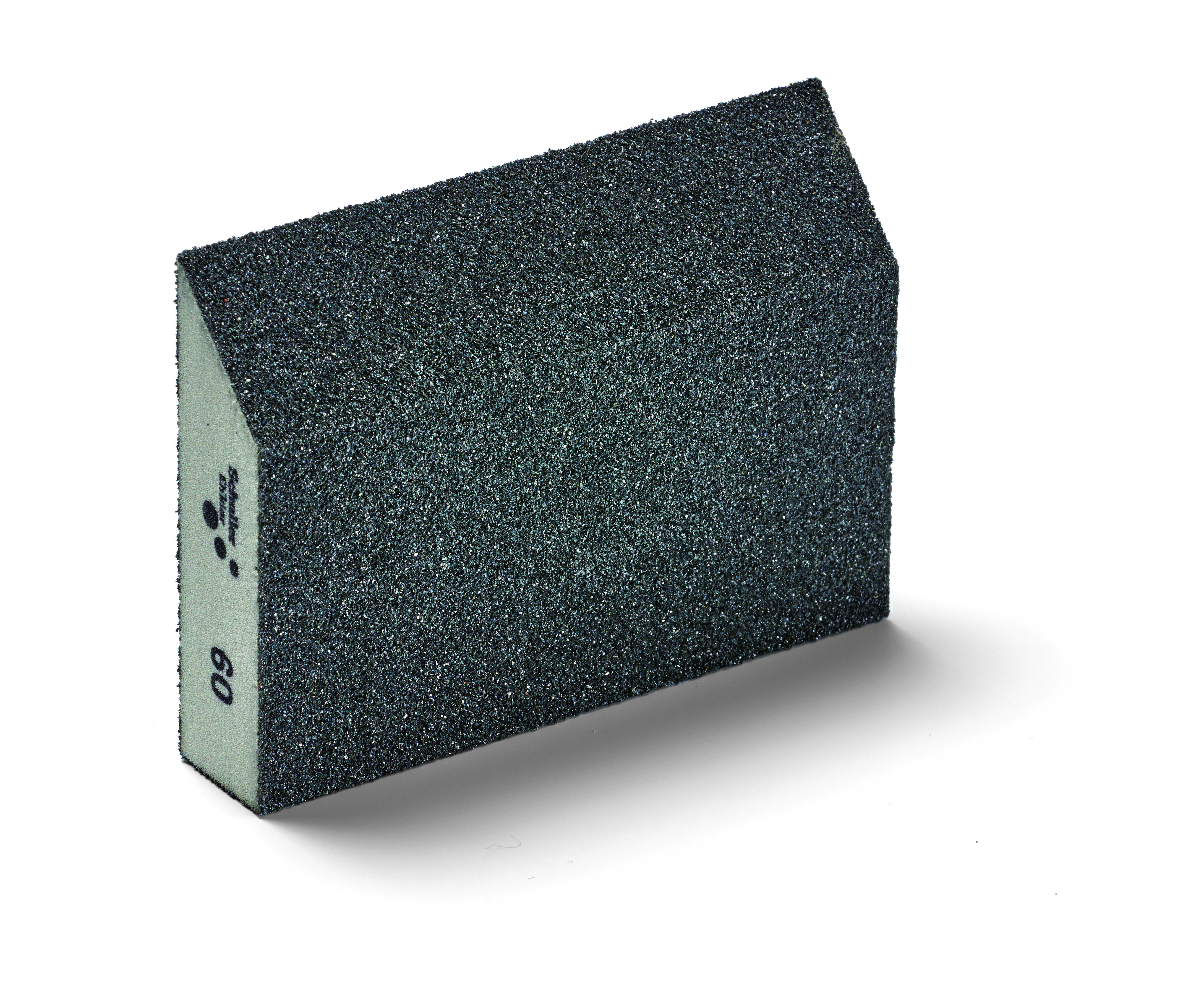 Brusná houba 125 x 90/65 x 25 mm, s 1 prodlouženou hranou. Brusné zrno je z karbidu křemíku.