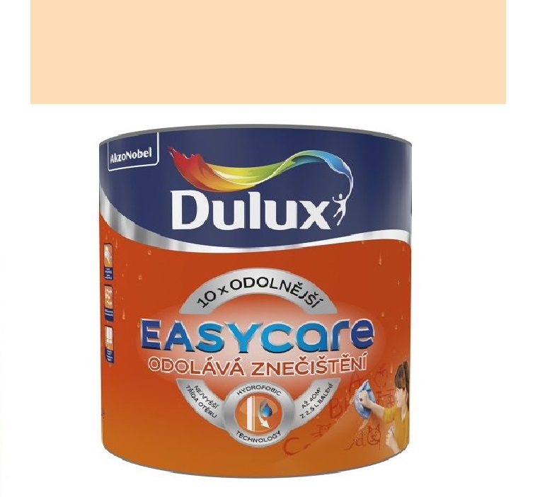 Dulux EasyCare je první interiérová barva s revolučními hydrofobními vlastnostmi. Díky speciálnímu povrchu odpuzuje vodu a tekuté nečistoty a nedovolí jim proniknout hlouběji do povrchu. Dulux EasyCare je jednou z mála barev s populární matnou povrchovou úpravou, extrémně odolných proti zašpinění. Na malovaném povrchu vytváří dokonale matnou vrstvu a eliminuje případné nedostatky podkladu. Vytváří film s nejvyšší odolností proti vzniku skvrn, jejich odstranění je velice snadné.