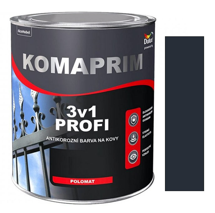 Komaprim 3v1profi je základní a vrchní antikorozní syntetická barva s výborným antikorozním účinkem kombinujícím bariérový a inhibiční efekt.