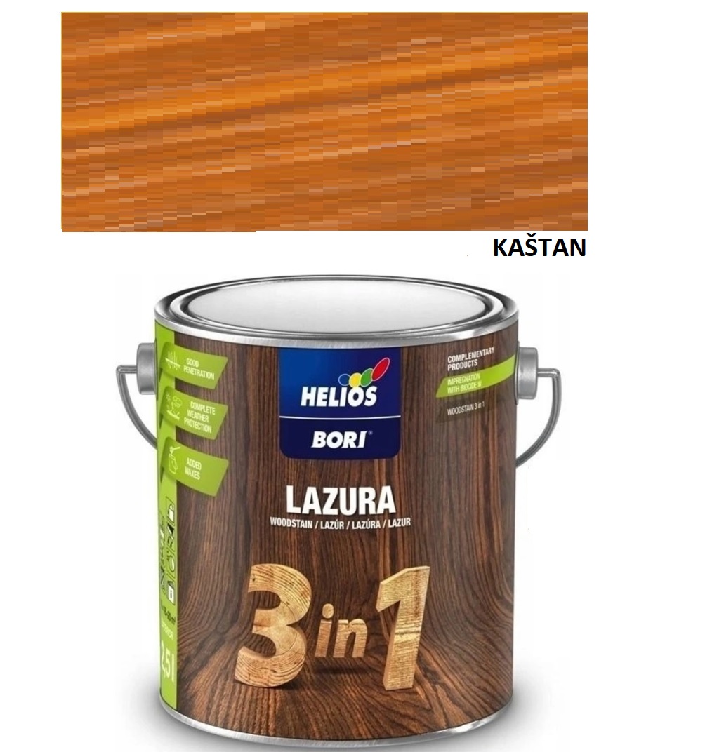 BORI LAZURA 3in1 je určena k dekoraci a ochraně venkovního dřeva, nabízí vynikající ochranu před sluncem a jinými klimatickými vlivy. Je vhodná na povrchy jako jsou okna, dveře, okenice, rolety, ploty, obložení, sruby, zahradní domky a nábytek, atd.
