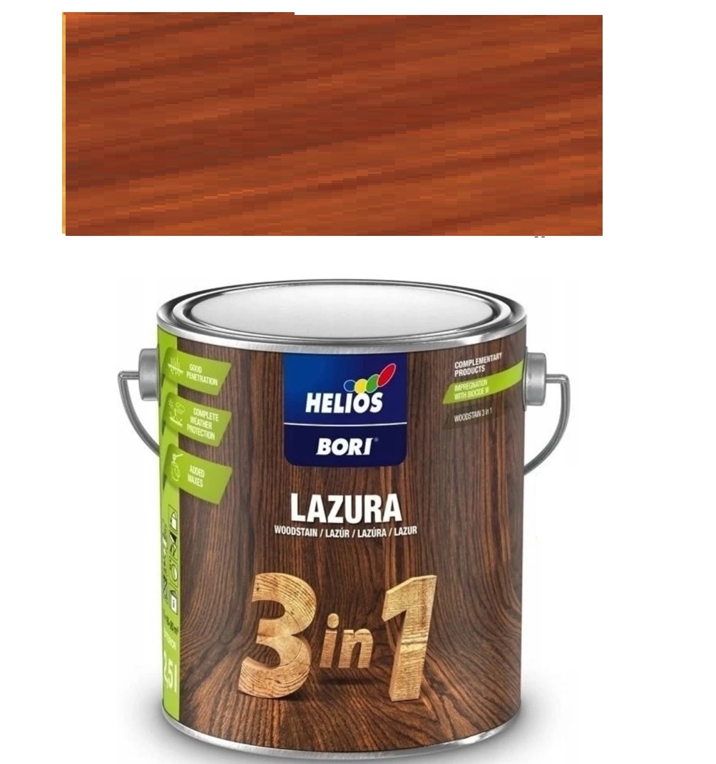 BORI LAZURA 3in1 je určena k dekoraci a ochraně venkovního dřeva, nabízí vynikající ochranu před sluncem a jinými klimatickými vlivy. Je vhodná na povrchy jako jsou okna, dveře, okenice, rolety, ploty, obložení, sruby, zahradní domky a nábytek, atd.