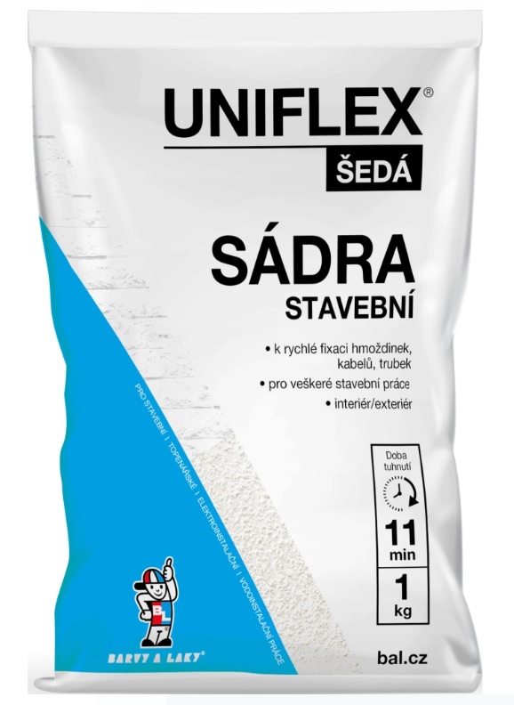 Uniflex sádra šedá, stavební, 1 kgSkladem 12 ks18 Kč/ ks15 Kč bez DPH