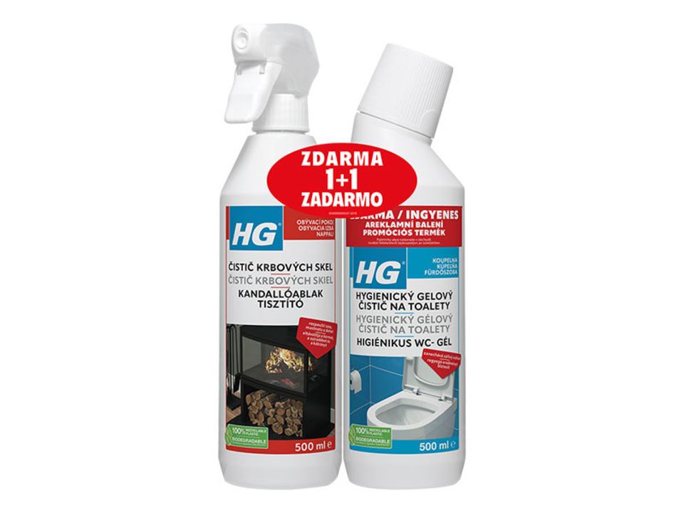 - HG Čistič skl. dvířek krbů + Gel na toalety