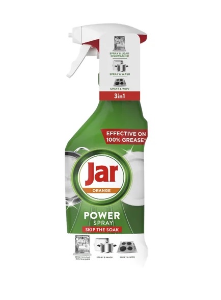 Už vás nebaví namáčet nádobí a drhnout kuchyň? Dejte sbohem starým způsobům čištění díky spreji Jar Power Spray! Náš revoluční víceúčelový sprej 3 v 1 působí na 100 % každodenní mastnoty na nádobí a v kuchyni před samotným mytím, abyste mohli dosáhnout čistoty a lesku bez námahy. Jeho používání je snadné a zábavné! A navíc vám pomáhá šetřit vodou! Jar Power Spray, jedno řešení na mastnotu před mytím nádobí v myčce, před ručním mytím nádobí a dokonce na kuchyňské povrchy!