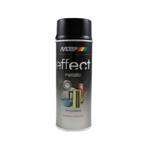 Metalické barvy ve spreji výrobce Motip Dupli. Metalické barvy obsahují jemnou třpytku a jsou vhodné nejen jako autolaky, ale i pro hobby využití, dekorování, modelařinu a podobně. Barva je na nitro-kombinační bázi a po svém vytvrdnutí je velice odolná poškrábání a částečně benzínu. Sprej může být použit na všechny druhy povrchů, např. kov, dřevo, kámen, sklo, keramika, papír, lepenka a různé plasty. Je vhodný pro vnitřní i venkovní použití, avšak pro zvýšení odolnosti vůči povětrnostním vlivům doporučujeme metalízu zalakovat bezbarvým, ochranným lakem. Pro správný postup při práci využijte tohoto návodu.