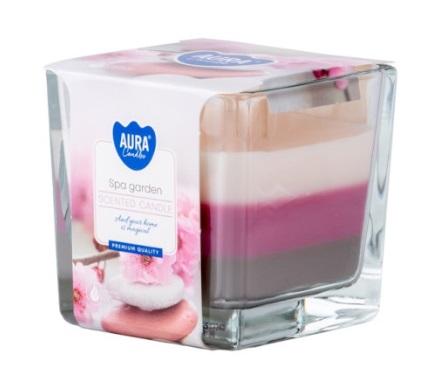 - Sklo hranol 80x80 mm ~32h Spa Garden tříbarevná vonná svíčka