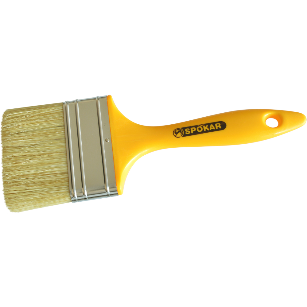 Spokar 81216 plochý štětec se směsi štětiny a dutých syntetických vláken, plastovým držadlem. Jsou určeny pro všechny druhy nátěrových hmot. směs štětiny a dutých syntetických vláken velikost číslo 1 až 4 šířka 14 mm viditelná délka vláken 42 až 48 mm držadlo plastové O výrobci:Štětce tradiční české firmy SPOKAR (Spojené kartáčovny a.s.) vyrábí kvalitní nástroje v oblasti natěracích a malířských potřeb a to jak pro hobby, tak pro profesionální uživatele. Jsou osazené rozdílnými mixy štětin, které jsou optimálně napasovány na jednotlivé druhy barev (syntetické, vodou ředitelné, lazury). Málo českých průmyslových podniků se může pyšnit 120 letou žijící tradicí kvalitní výroby a rozsáhlých trhů jako Spojené kartáčovny a.s. Pelhřimov.